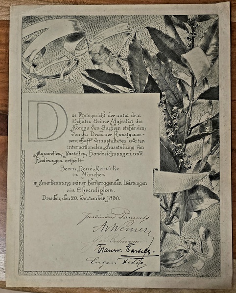 1890 Dresdner Kunstgenossenschaft Ehren Diplom